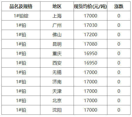 9月22日各地区现货铅价格