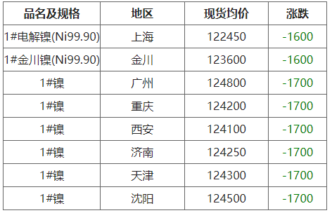 9月26日各地区现货镍价格
