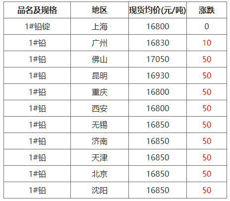 10月9日各地区现货铅价格