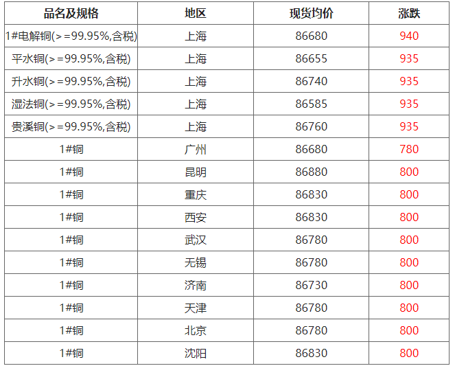 10月10日各地区现货铜价格