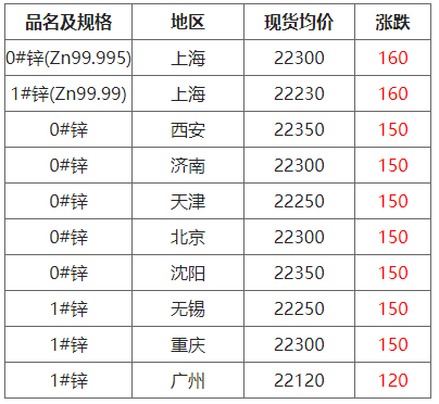 10月10日各地区现货锌价格