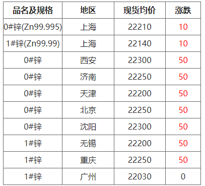 10月14日各地区现货锌价格