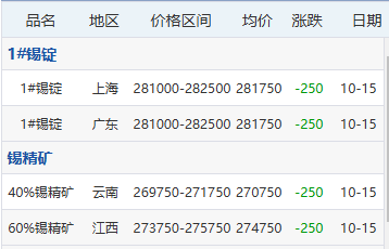 10月15日各地区现货锡价格