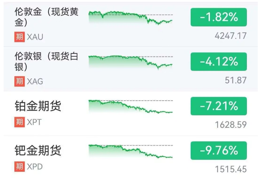 深夜,贵金属集体下跌,此前黄金、纷纷创出历史新高。
