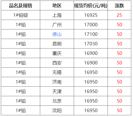 10月20日各地区现货铅价格