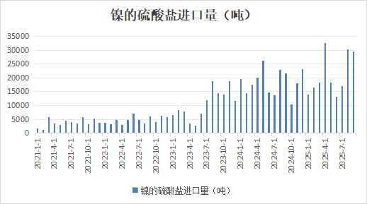 9月中国硫酸镍进口小幅下滑 但仍处于高位