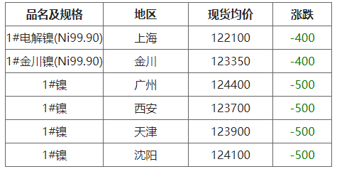 10月22日各地区现货镍价格