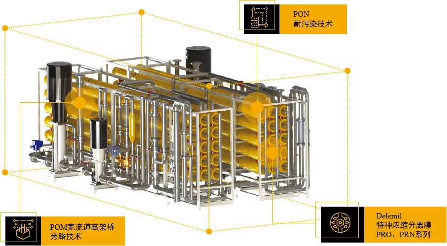 应用自主研发的Neterfo极限分离系统,整合至原废水系统,作为原系统的补充,避免原系统设计不足导致的蒸发设备不够的情况出现。