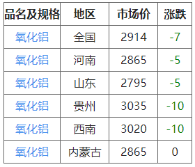 10月27日各地区现货氧化铝价格