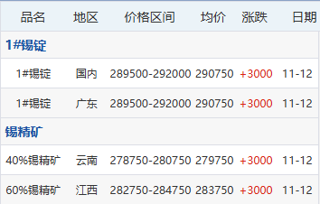11月12日各地区现货锡价格