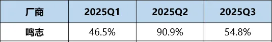 2025年Q1-Q3分厂商占比情况