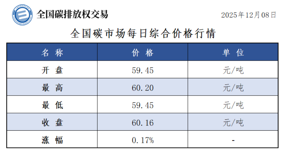 2025年1月1日至12月8日,全国碳市场碳排放配额成交量196,550,315吨,成交额12,079,209,504.01元。
