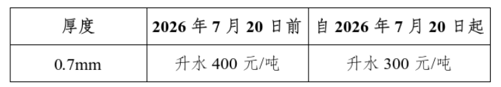 根据《上海期货交易所不锈钢期货合约》《上海期货交易所不锈钢期货业务细则》等有关规定,经研究决定,对不锈钢期货部分厚度升贴水进行调整,自2026年7月20日起执行,具体情况如下: