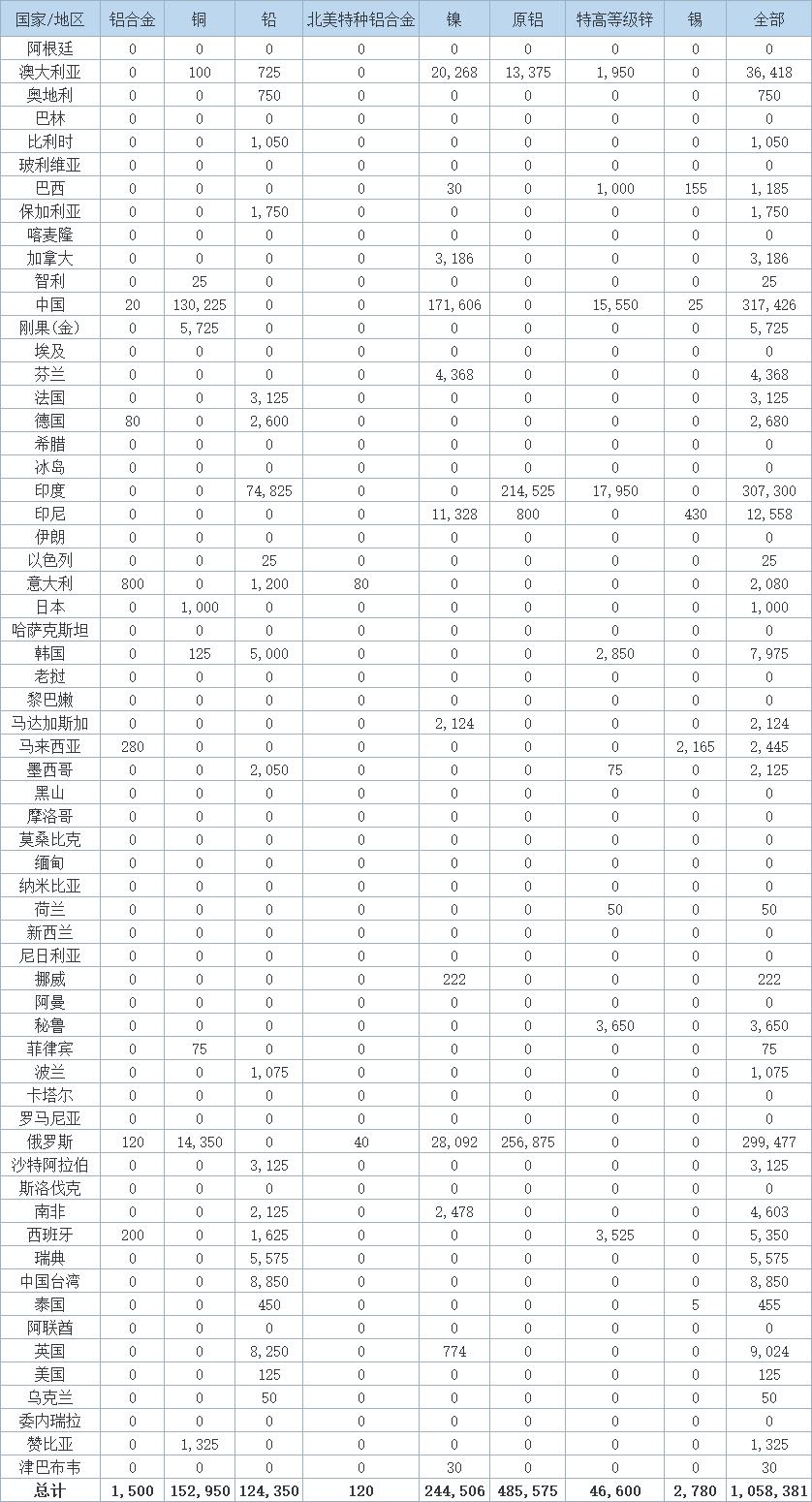 伦敦金属交易所(LME)发布11月按产地划分的金属库存月度报告(单位:吨):