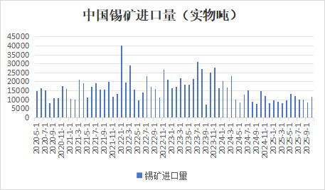 除了突发的地缘冲突,长期存在的矿端供应瓶颈为此次锡价上涨奠定了基础。一方面,缅甸佤邦锡矿复产进程持续不及预期。2025年4月开启的复产计划,受雨季、许可成本、设备调试等因素拖累,实际出矿量远低于市场预期,前三季度我国自缅甸进口锡矿实物量维持低位,即便10月进口量有所回升,也未能缓解国内冶炼厂的原料压力。