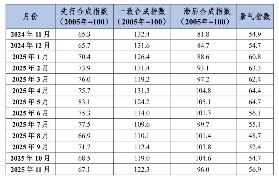 综合景气指数由10项指标构成,即先行指数和一致指数的构成指标。