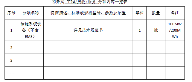 本次采购范围为100MW/200MWh储能系统设备(不含EMS)。