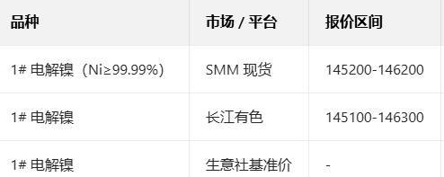 2025 年12月22日国内主流市场镍现货报价