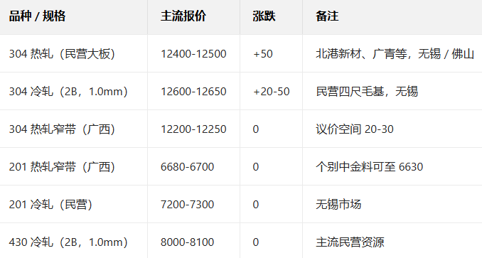 12月26日国内主流不锈钢现货报价