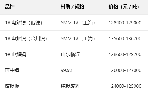 12月30日国内主流镍现货价格