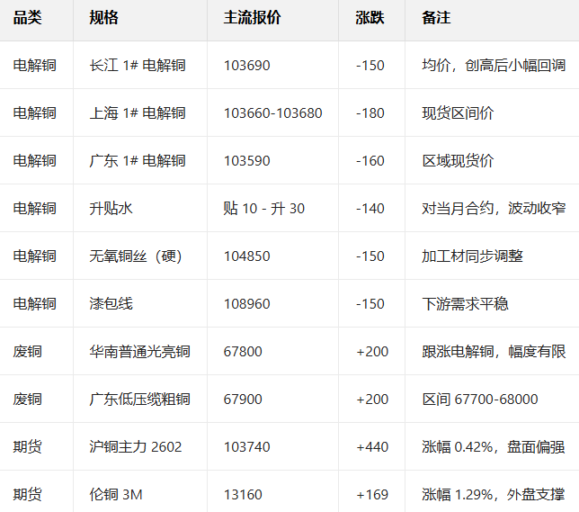 1月7日国内铜现货报价参考