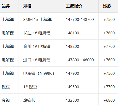 1月7日国内镍现货报价