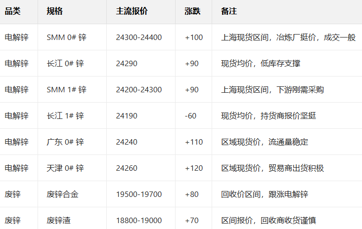 1月7日国内锌现货报价