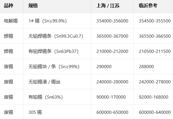 1月8日锡现货报价