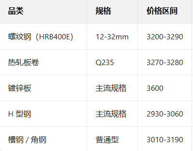 1月12日国内主流钢材现货报价
