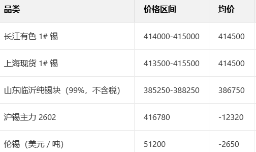 1月16日锡主流现货报价