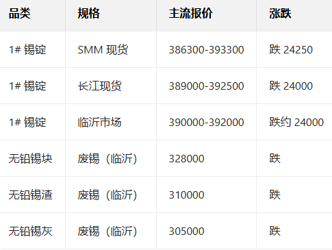 1月19日锡现货报价参考