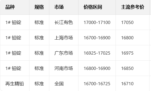 1月21日国内铅现货报价参考
