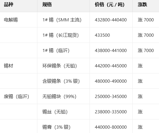 1月28日锡主流品种现货报价参考