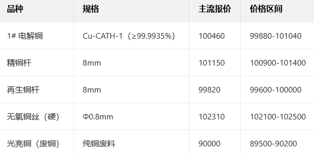 2月2日国内铜现货报价参考