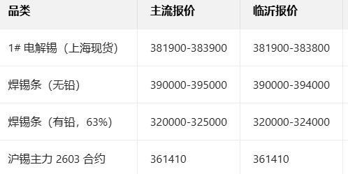 2月3日主流锡现货报价