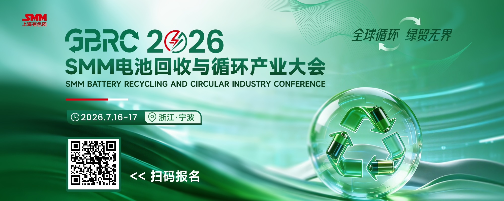 7月16-17日,浙江宁波,GBRC 2026电池回收与产业循环大会邀您一同,深度探讨再生铅交割新机遇,解码动力电池回收新趋势,共探产业破局之路,共筑电池回收循环经济新生态!
