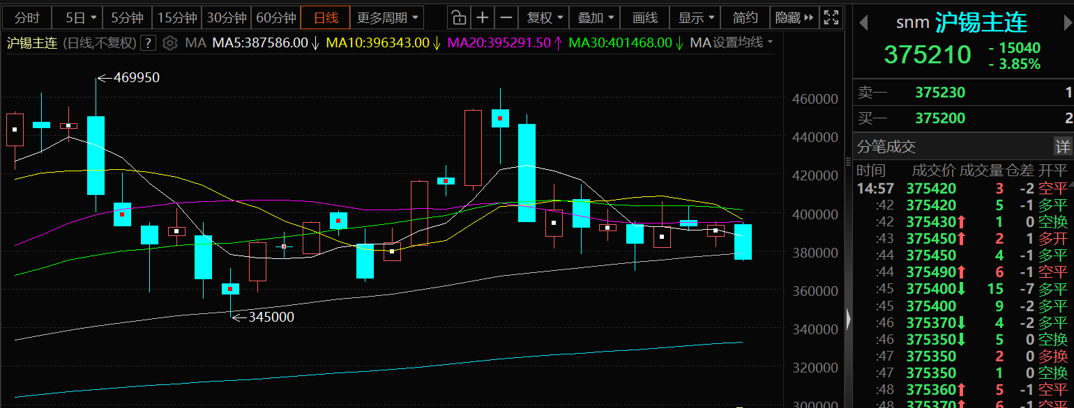 沪锡震荡下行,主力合约跌超3%。中东地缘局势仍然紧张,国际油价再次上涨,重新引爆通胀担忧,打压市场对美联储的降息预期,叠加美元走强,沪锡承压下行。
