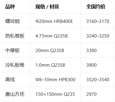 3月16日钢材现货主流报价参考