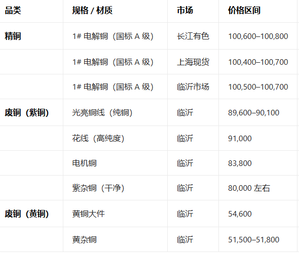 3月16日铜现货主流报价参考