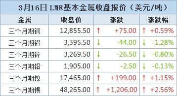 伦敦时间3月16日17:00(北京时间3月17日01:00),LME三个月期铜上涨75美元,或0.59%,收报每吨12,855.5美元。稍早一度下跌0.9%。