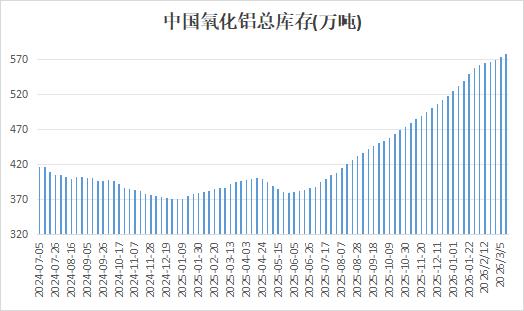 不过,虽然近期减产缓解供应端压力,但当前氧化铝运行产能总体变化不明显,产量阶段性企稳。下游电解铝运行产能小幅增加,对氧化铝需求有所抬升,但仍显著高于消费量。另外,由于霍尔木兹海峡封锁,影响铝土矿及氧化铝进入中东地区,导致更多海外氧化铝流入国内的可能性上升,国内氧化铝进口量或有增加。国内库存攀升态势不改。