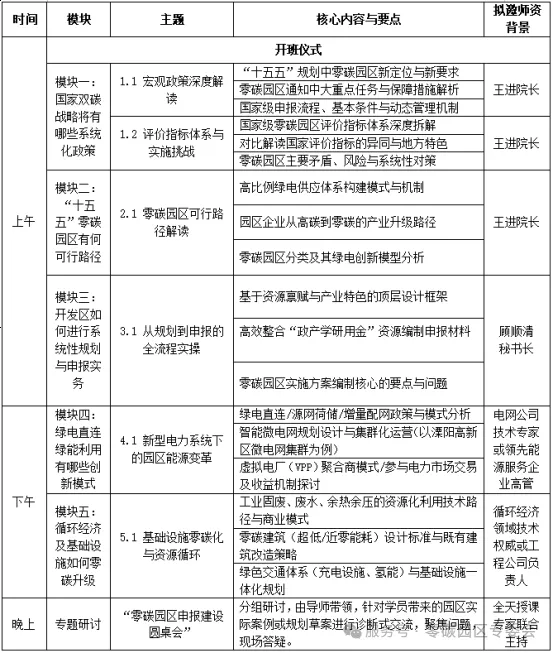 “规划-建设-运营-融资”全链条覆盖:内容贯穿零碳园区从顶层设计到持续运营的全生命周期,帮助学员构建系统性的知识框架与操作能力。