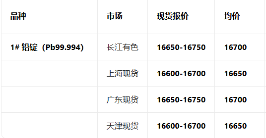 3月18日铅现货主流报价参考
