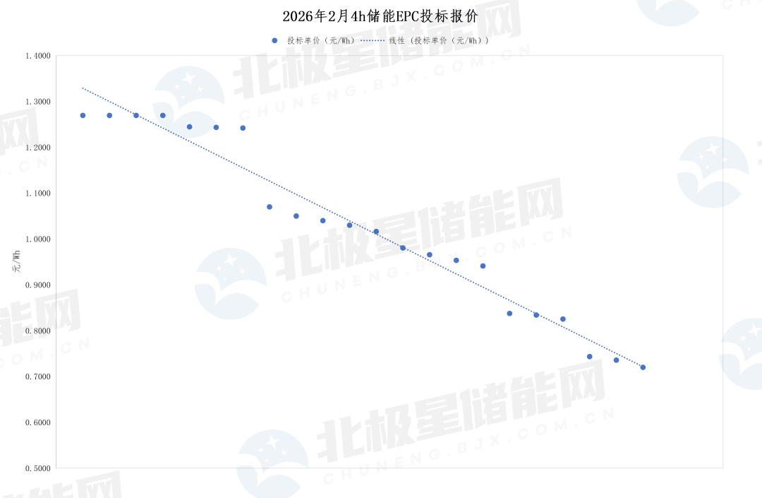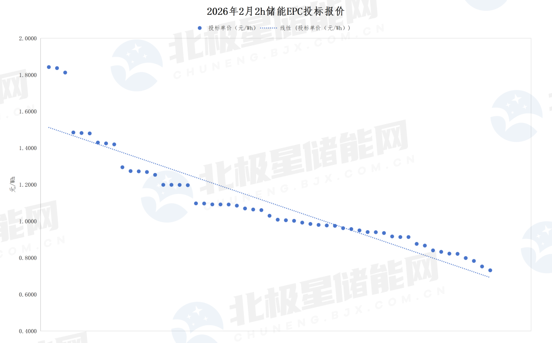 2026年2月国内储能EPC招标中标市场共产生89个有效报价,中标价格集体上涨。