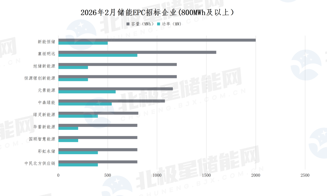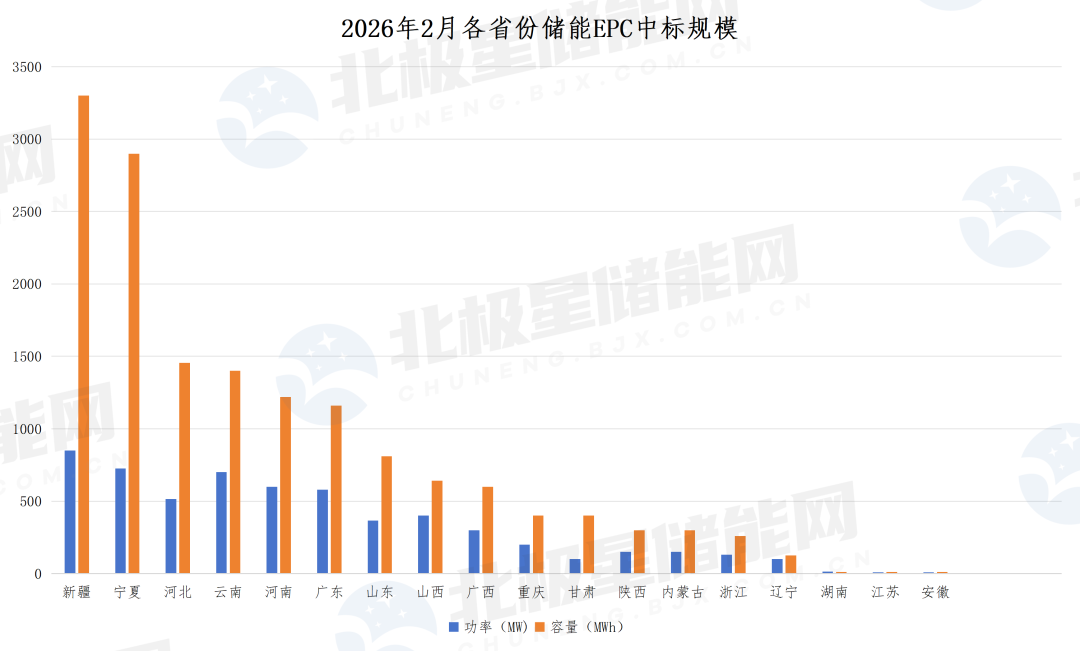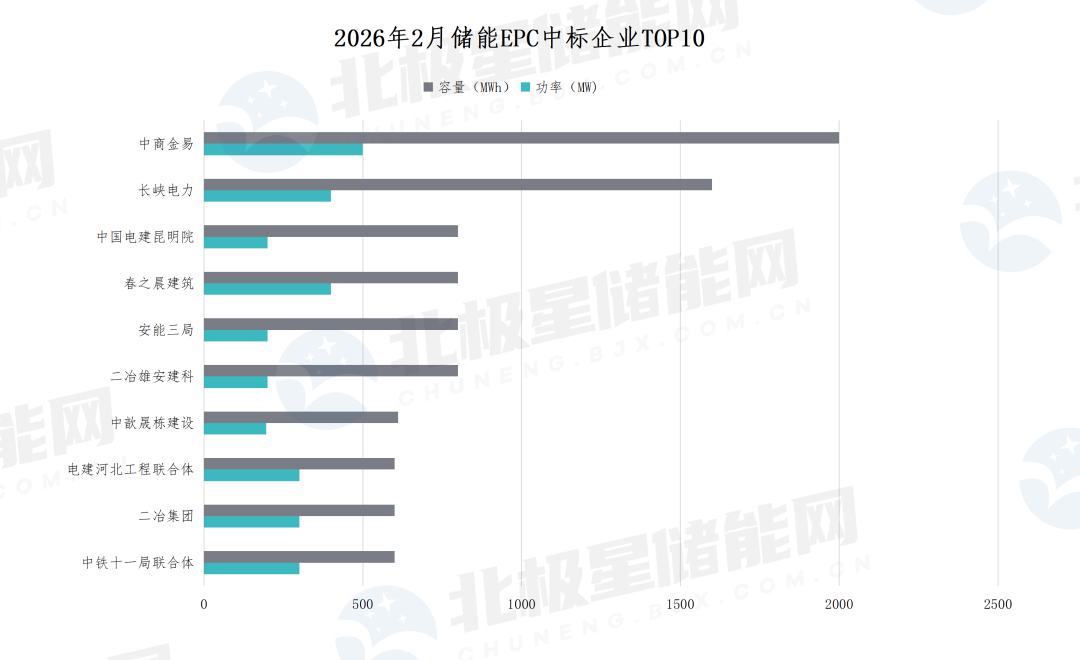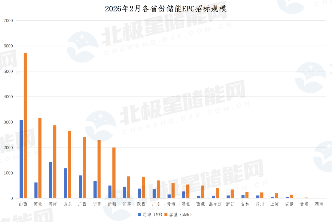 2026年2月储能EPC市场重磅数据出炉:5.8GW/15.3GWh中标规模环比下滑超50%,2h与4h储能EPC中标价环比上升,山西单月招标规模5.7GWh……